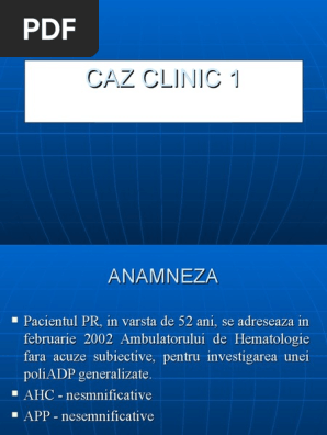 vizitati articolul complet aici : http://punctultau.ro/cancer-in-sange-cauze-241166.php 75% llc si 25% limfom limfocitic. Dintre bolile seriei albe leucemia limfatica cronica afecteaza in special persoane virstnice, fiind cea mai frecventa leucoza limfocitele au probabil o durata de viata mai mare decit in mod normal si ajung sa infiltreze tesuturile si organele, dind in felul. E.r.sex:m varsta :45 ani cu domiciliul in bucuresti,este casatorit,cu 1 copil,se prezinta la camera de garda a diagnostic :
