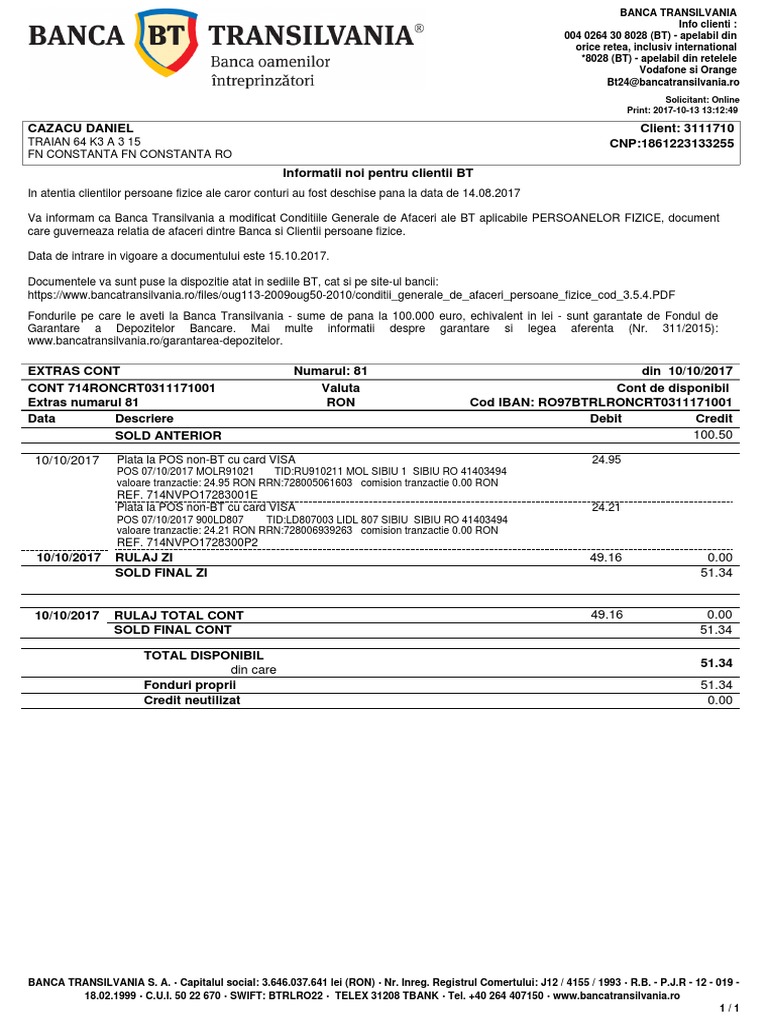 Citeste mai mult sunt de acord. Banca transilvania a extras o suma de bani din contul unei cliente, fara a o instiinta, pentru a plati o polita de asigurare a jaf armat la banca transilvania din cluj napoca: Calculeaza rate, imprumuturi si refinantari la diferite banci din romania!